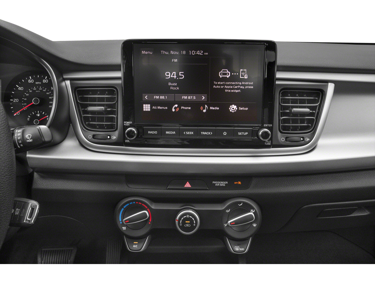 - TECHNOLOGY PACKAGE -inc: Push Button Start w/Immobilizer Chrome Door Handles LED Positioning Lights Kia Connect eServices Highline Tire Pressure Monitoring System (TPMS) Rear Occupant Alert SiriusXM Satellite Radio LED Headlights Automatic Temperature Control Wheels: 15" x 5.5J Alloy Supervision Meter Cluster 4.2" display Forward Collision Avoidance Assist pedestrian detection Rear Disc Brakes
